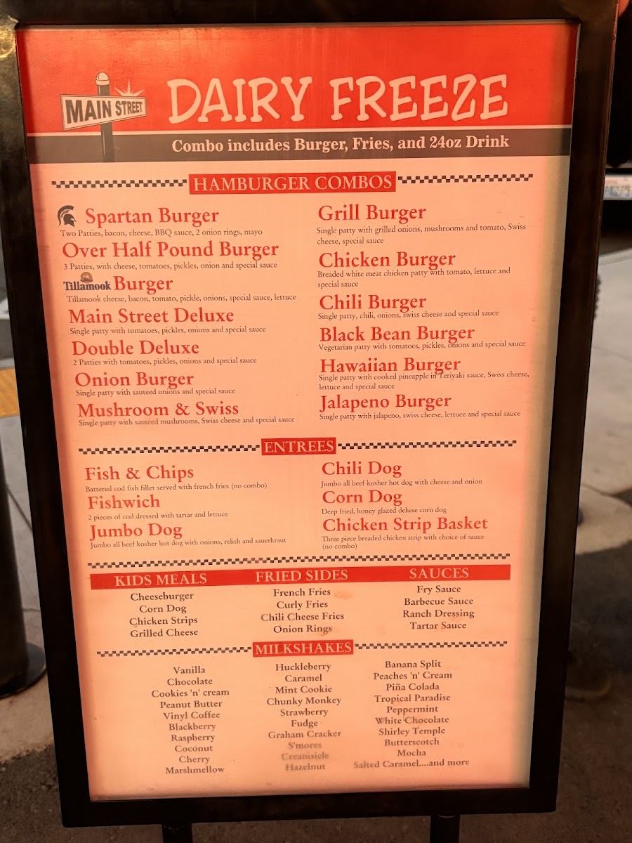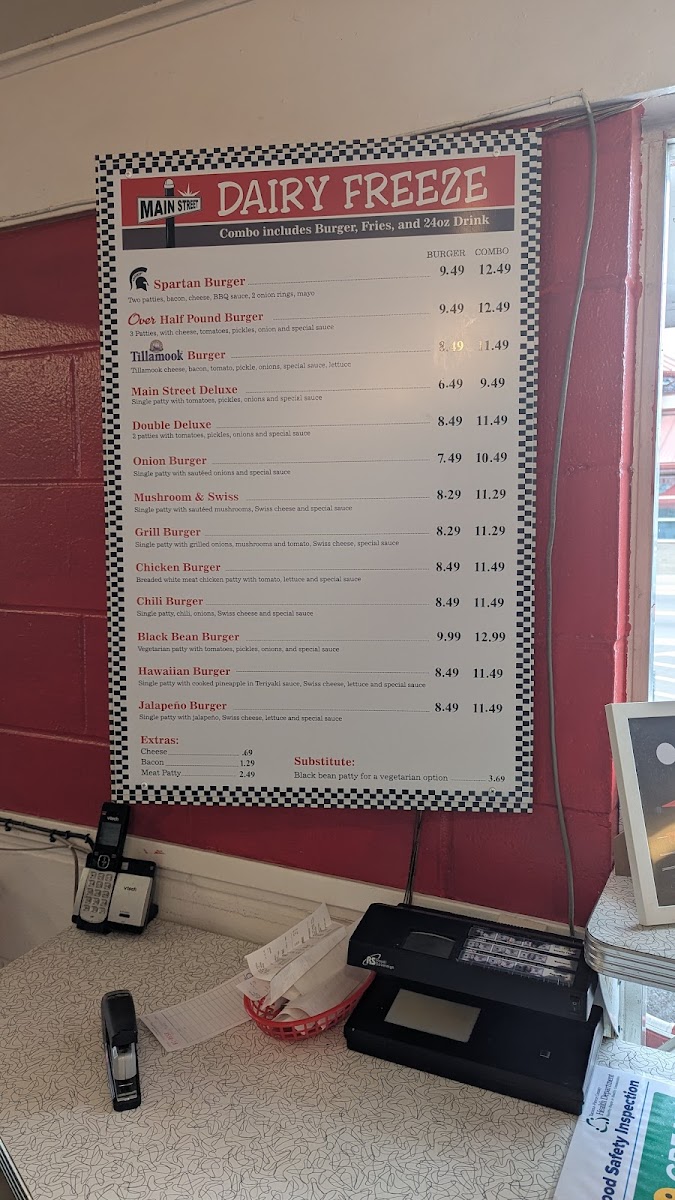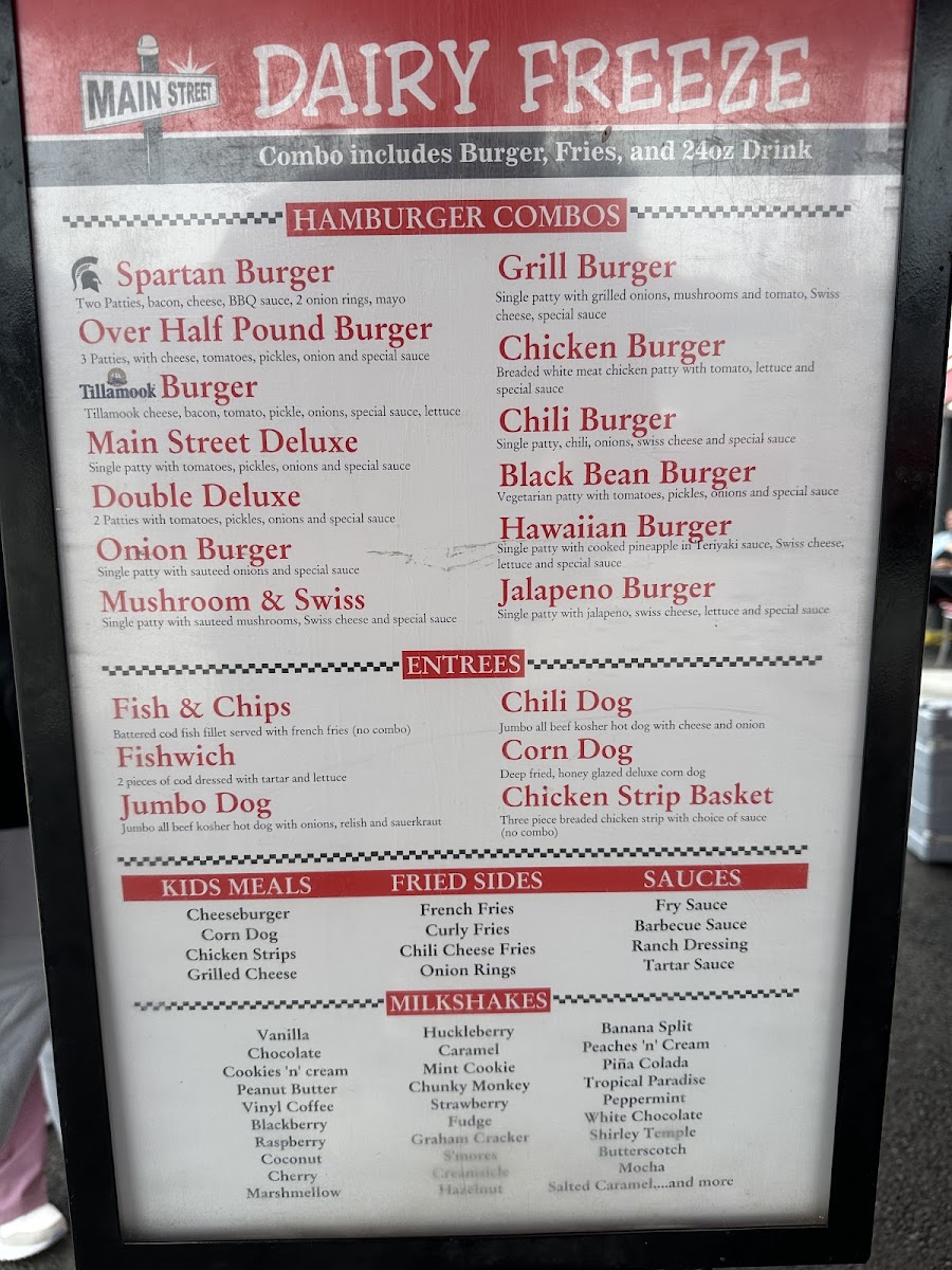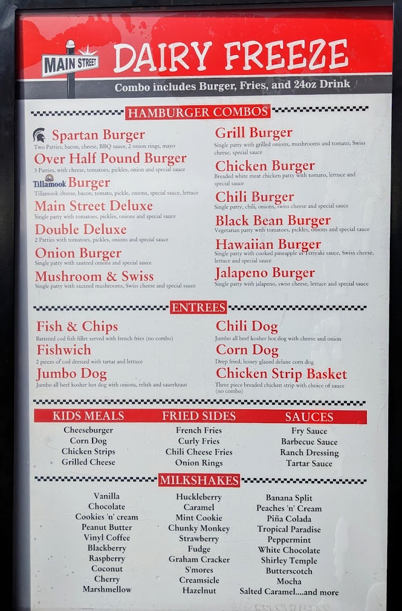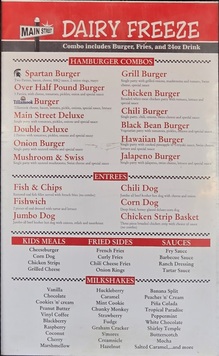 Main St Dairy Freeze Menu